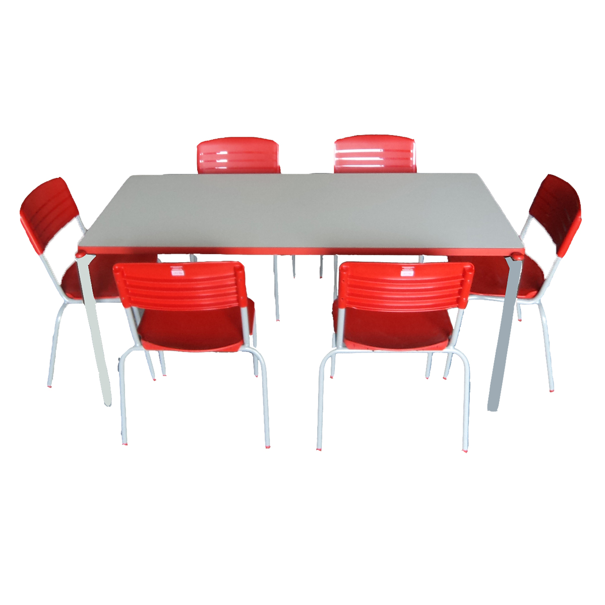 Assento e encosto: Em polipropileno injetado, cor vermelho, com design ergonômico.