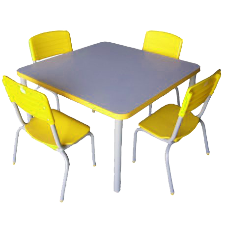 Assento e encosto: Em polipropileno injetado, cor amarelo, com design anatômico que proporciona conforto e postura correta.
